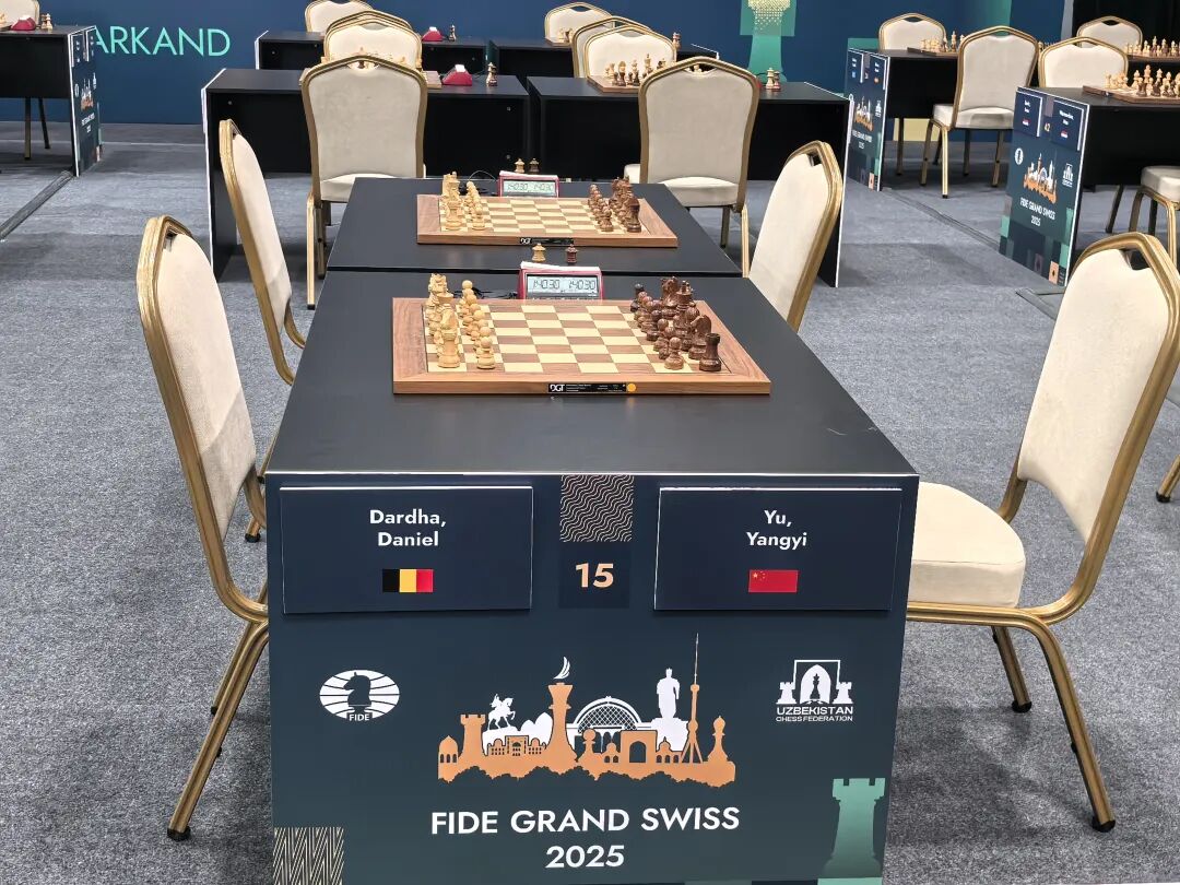 9月3日,2025年国际棋联大瑞士制赛在乌兹别克斯坦历史名城撒马尔罕举行盛大开幕式。来自世界各地的116名棋手参加男子组的比赛,56名棋手参加女子组的比赛,北京时间9月4日18:00将展开首轮角逐。中国共有八名棋手参加本年度大瑞士赛的角逐,其中包括三名男棋手:余泱漪、卢尚磊、许翔宇;以及五名女棋手:谭中怡、鹿妙夷、宋宇新、翟墨和郭琦。棋手之外,来自中国的国际级裁判韩亚骏将在比赛中执裁。按照规定,获得男女组前两名的棋手将分别晋级2026世界冠军候选人赛和2026女子世界冠军候选人赛。国际棋联主席德沃尔科维奇、乌兹别克斯坦棋协第一副主席萨杜拉耶夫、撒马尔罕州州长博博耶夫,以及各位参赛棋手出席开幕式。开幕式伊始,一段跨越时空的视频,将观众带入历史长河。故事自七世纪的阿夫拉西阿卜考古遗址启程,一路延展至当代,依托流动的光影艺术,生动演绎了国际象棋在这片土地上绵延十三世纪不曾中断的文化传承。视频中,一束璀璨的金色光芒缓缓点亮自阿夫拉西阿卜古丘出土的千年国际象棋文物,熠熠生辉间,深刻印证了中亚作为国际象棋文明重要起源地之一的悠久历史。随后的现代舞表演以镜面人影与几何方阵呈现棋盘格般的意象,巧妙呼应赛事主题。国际棋联主席德沃尔科维奇在致辞中向乌兹别克斯坦政府及棋协致谢,指出该国通过十五年系统性投入,培育出了跻身世界顶尖的棋手梯队,“乌兹别克斯坦的成就为各国如何提升国际象棋水平提供了示范样本”。