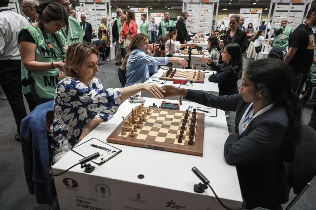 经过一天休战后,在匈牙利首都布达佩斯进行的第45届国际象棋奥林匹克团体赛北京时间9月18日晚再燃战火。在北京时间9月19日凌晨结束的第七轮比赛中,中国男队1.5比2.5负于印度男队,中国女队4比0战胜澳大利亚女队。目前,印度男女队豪取七连胜,强势领跑男女组。奥赛第七轮,印度男女队成为全场最大的关注焦点。他们延续了强势发挥,男队战胜了中国队,女队力克格鲁吉亚队,均达成七连胜!中国男队虽遭遇首败,但仍有争金夺银的希望。中国女队止住颓势,轻松战胜对手,也为自己保留了夺牌机会。中国男队第七轮迎来领头羊印度男队。这是双方继去年杭州亚运会(双方打平,★参阅→杭州亚运会专题)之后,又一次在世界大赛相遇。眼前的这支印度队的阵容与亚运会完全一样,但等级分又有了明显长进。中国队今天安排世界冠军丁立人休战,这样做,一来回避了丁立人与古克什在世界冠军赛之前提前交手,同时也有意让韦奕对上古克什,卜祥志对上埃里加伊斯。毕竟年初的维克安泽大赛上,韦奕就是凭借快棋加赛击败古克什拿到了自己的首个超级大赛冠军,今年的深圳龙岗大师赛上,卜祥志曾完胜埃里加伊斯。毫无疑问,中印两队本届奥赛的目标都是登上最高领奖台,因此这场关键的“对冲战”将直接左右双方的“KPI”!奥赛历史上,中印两队只有过两次交手,1990年诺维萨德奥赛上,中国队小胜。2006年都灵奥赛,双方打平,卜祥志和王玥都参加了都灵的那场战斗。今天的中印大战持续了近6个小时,最终年轻的印度队凭借世界冠军挑战者古克什的关键胜利,以2.5比1.5获胜,迎来七连胜。比赛中,二台余泱漪和三台卜祥志的战斗结束得相对较早。余泱漪执白与普拉格纳南达仅下了17个回合便形成重复局面,不变作和。卜祥志执黑与埃里加伊斯的战斗则复杂许多,双方在俄罗斯防御中异向易位,进行了非常激烈的两翼对攻,但最终也旗鼓相当,以黑棋长将作和。这盘和棋,也成功终止了埃里加伊斯的前六轮六连胜的强势。四台王玥迎战2006年的老对手哈里克里什纳。两人在意大利开局中大斗了56个回合,尽管哈里一度形势不错,但面对王玥的顽强防守,未能有效扩大战果,最终双方在车兵残局中握手言和。