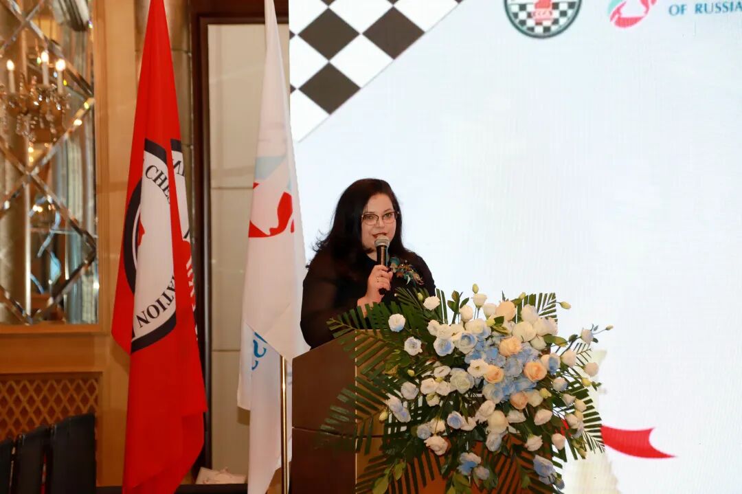 俄罗斯国际象棋代表团领队Ekaterina Vasilchenko代读俄罗斯国际象棋联合会主席菲拉托夫的致辞。菲拉托夫祝贺比赛赛隆重开幕,他说:“自2014年起,这项比赛定期在两国轮流举行,这种独特的比赛是中俄两国良好且牢固的体育关系的象征。俄罗斯和中国的年轻棋手不仅有机会相互切磋棋艺,还可以观摩优秀特级大师的比赛,甚至与他们同场竞技。此外,俄罗斯人还将了解哈尔滨的文化,这座城市历来被认为是中国最具俄罗斯特色的城市。祝大家好运,比赛精彩!”