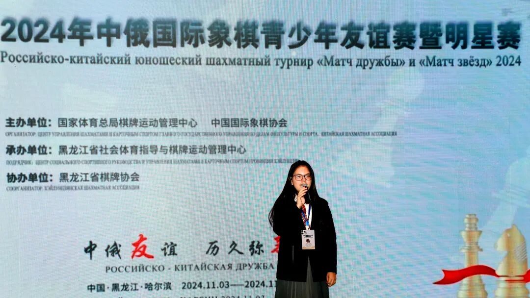 11月4日,2024年中俄国际象棋青少年友谊赛暨明星赛在黑龙江省哈尔滨市香格里拉酒店举行了隆重的开幕仪式,开幕仪式结束之后,首日的比赛正式打响!