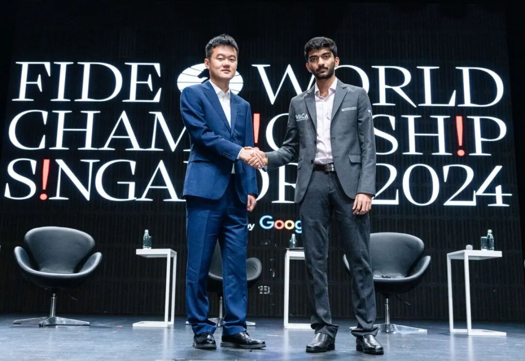 在被问及比赛前的心态和感受时,丁立人向观众敞开心扉:“第一次参加世界冠军赛时,我非常紧张,但这一次我感到很平静且充满活力。这是我第一次来到新加坡,有很多值得一游的地方。新加坡是一个热情的国家,今天早上我受到了很多孩子们的热情欢迎,也收到了许多礼物。”他继续说道:“比起我的对手,我有更多的经验。我的对手虽然年轻,但在许多方面已经非常成熟。我希望我们都能发挥出最好的水平,但我知道要击败他并不容易。昨天我回顾了我最近的一些对局,质量并不太好。我下了很多短和棋,甚至在优势局面下下和了。很明显,我的表现还远未达到巅峰。但我打算回顾一些我精彩对局,以重拾信心和斗志,期待能表现得更好。”