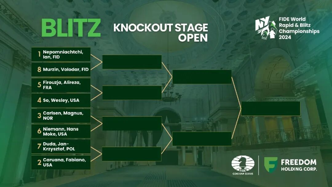 比对小分后,涅波姆尼亚奇(俄罗斯)、卡鲁阿纳(美国)、卡尔森(挪威)、苏伟利(美国)、菲罗贾(法国)、尼曼(美国)、杜达(波兰)和穆尔钦(俄罗斯)排名前八,进入淘汰赛。