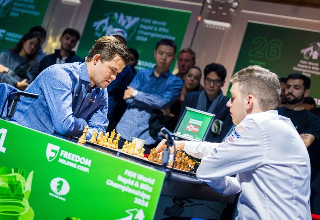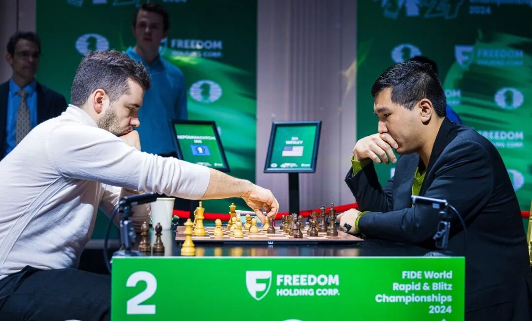 当地时间12月31日傍晚(北京时间1月1日清晨),在美国纽约举行的2024国际棋联世界快棋和超快棋锦标赛进行了超快棋淘汰赛阶段的争夺。挪威棋手卡尔森与俄罗斯棋手涅波姆尼亚奇在冠亚军决赛中势均力敌,未分高下,最终双双并列冠军。