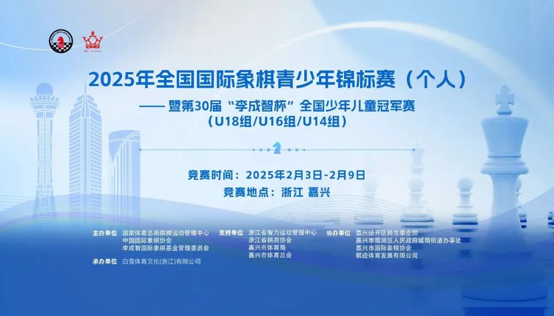 2025李杯嘉兴赛区比赛由国家体育总局棋牌运动管理中心、中国国际象棋协会和李成智国际象棋基金管理委员会主办,浙江省智力运动管理中心、浙江省棋类协会、嘉兴市体育局、嘉兴市体育总会作为支持单位。白雪体育文化(浙江)有限公司承办,嘉兴经开区民生事业部、嘉兴市南湖区人民政府城南街道办事处、嘉兴市国际象棋协会、棋迹体育发展有限公司协办。